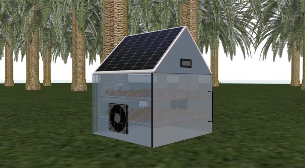 وأضاف أنه قد تم تصميم الجهاز باستخدام مادة البولي كربونيت التي تعمل على توزيع أشعة الشمس وعزل الأشعة فوق البنفسجية، ويتكون الجهاز من طبقات عدة قابلة للتحريك بشكل أفقي مصنوعة من مادة الستانلس ستيل، ويختص الجهاز بتجفيف التمور باستخدام مراوح تعمل بالطاقة الشمسية النظيفة تعمل على التقليل من نسبة الرطوبة داخل الجهاز، إلى جانب الاستفادة من أشعة الشمس الطبيعية، حيث يتم تشغيل المراوح عند ارتفاع درجة الرطوبة داخل الجهاز إلى أكثر من 30%، ويتم إغلاقها عند انخفاض درجة الرطوبة إلى أقل من 25%، وكذلك عند ارتفاع درجة الحرارة إلى أكثر من 40 درجة مئوية، بواسطة حساسات تستشعر درجة الرطوبة والحرارة.