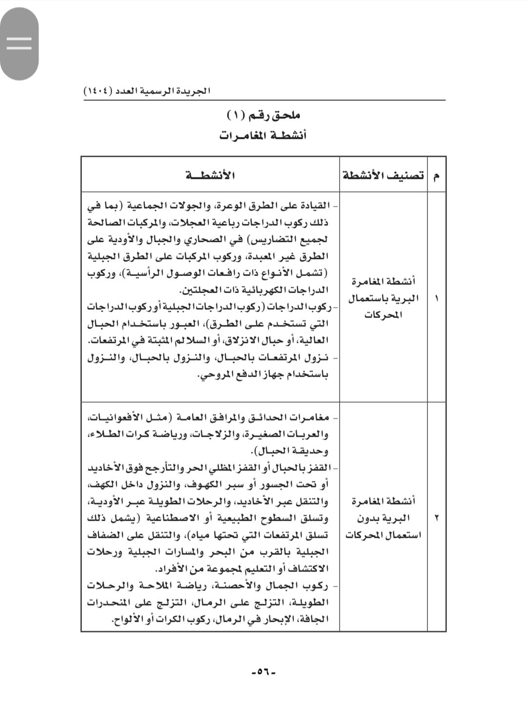 المادة الأولى: يضاف نشاط تنظيم رحلات سياحة المغامرات إلى أنشطة مكاتب السفر والسياحة المنصوص عليها في المادة (18) من قانون السياحة المشار إليه.
