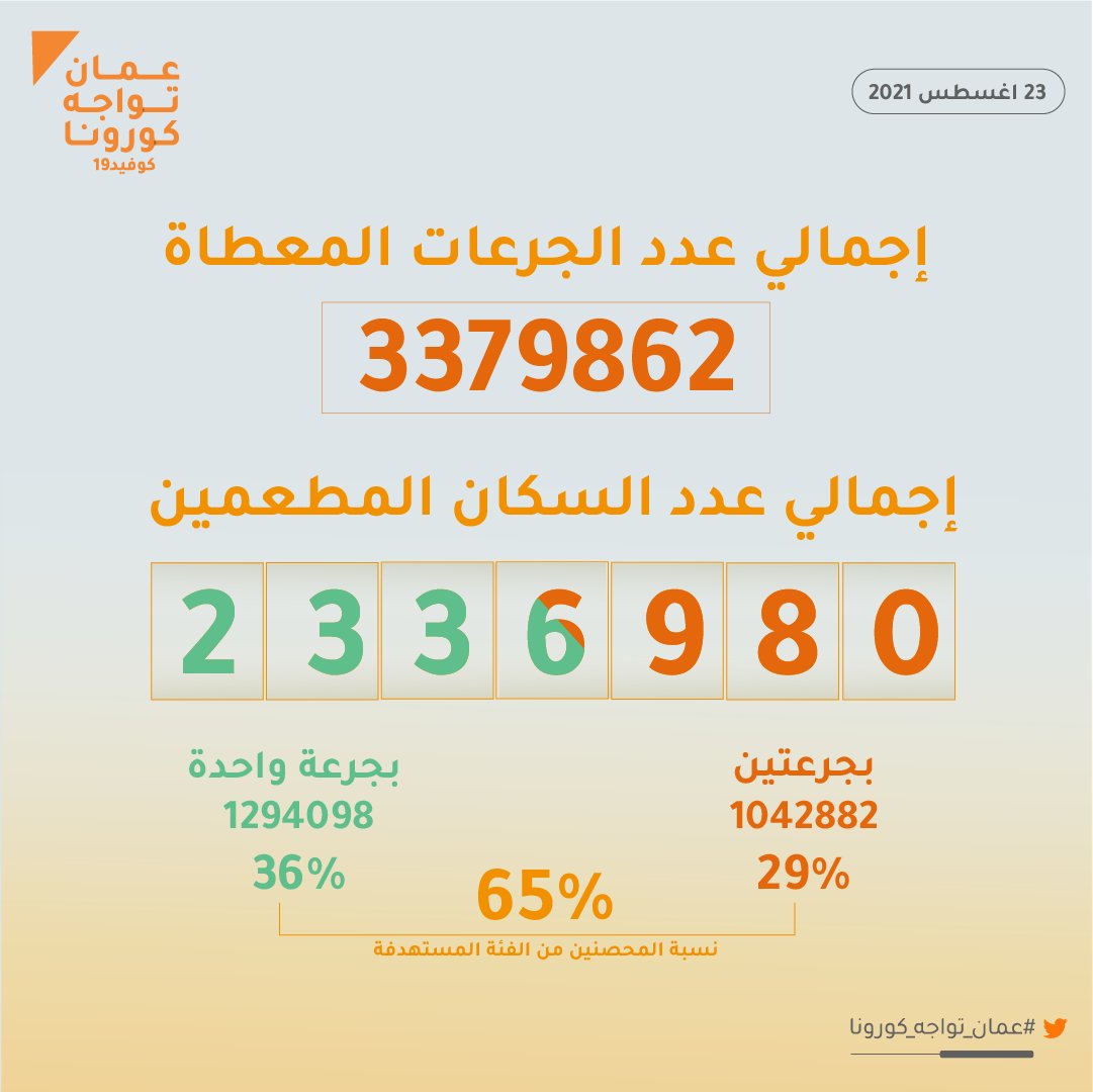 أعلنت اللجنة العليا المكلفة ببحث آليات التعامل مع تطورات فيروس كورونا كوفيد19، تحصين 181048 شخصا في السلطنة خلال أسبوع.