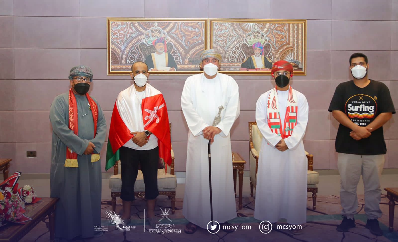 استقبل سعادة السيد سعيد بن سلطان البوسعيدي وكيل الوزارة للثقافة فرقة مسرح مزون بقاعة استقبال كبار الشخصيات بمطار مسقط الدولي؛ تكريمًا على فوزهم بجائزة أفضل عرض مسرحي أوّل بمهرجان “مسرح بلا إنتاج” الدولي ٢٠٢١ عن مسرحية “مدق الحناء”؛ بالإضافة إلى ٤ جوائز فردية.