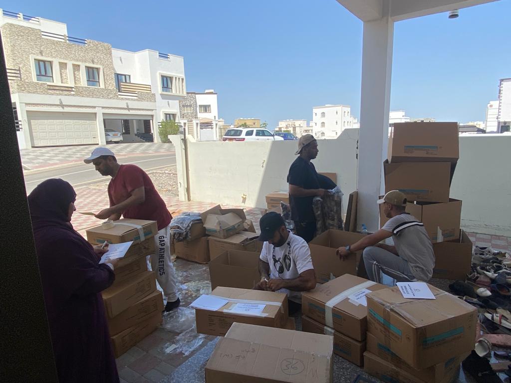 كما ساهمت الجمعية بما يقارب الفين ريال عماني لملابس جديدة منوعة للاطفال والنساء والرجال ومائتان وخمسون طرداً للمؤن الغذائية بالاضافة الى الاواني ومعدات خفيفة للطهي وادوات صحية ومستلزمات اخرى كما تم تصميم استمارة للتسجيل في الحملة ووضعت بعض الضوابط لضمان التنظيم وتيسير العمل بسهولة مثل ضوابط التبرع بأن تكون التبرعات جديدة وغير مستعملة وتم تحديد الاحتياجات بناءًا على التواصل مع المواطنات المتضررات وجمعيات المرأة العمانية بالولايات المتأثرة .