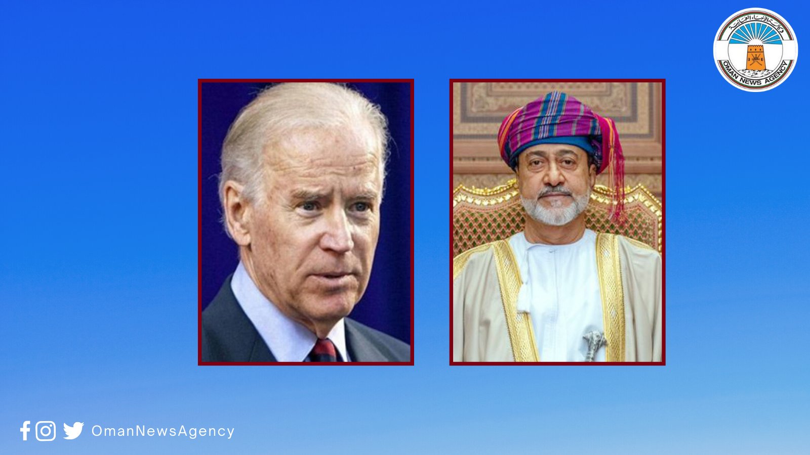 بعث حضرة صاحب الجلالة السلطان هيثـــم بن طارق المعظم – أبقاه الله – برقية تعزية ومواساة إلى فخـامـة الرئيس/ جو بايدن رئيس الولايات المتحدة الأمريكية في ضحايا الأعاصير التي ضربت عدة ولايات أمريكية.
