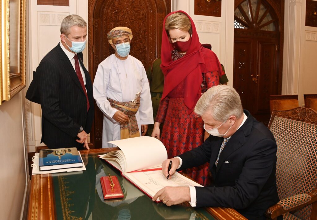 جلالة الملك فيليب ليوبولد لويس ماري ملك البلجيكيين وقرينته جلالة الملكة ماتيلد ماري كريستين غيسلاين ملكة البلجيكيين يزوران جامع السُّلطان قابوس الأكبر في ولاية بوشر بمحافظة مسقط في إطار زيارتهما الرسمية الحالية لسلطنة عُمان.