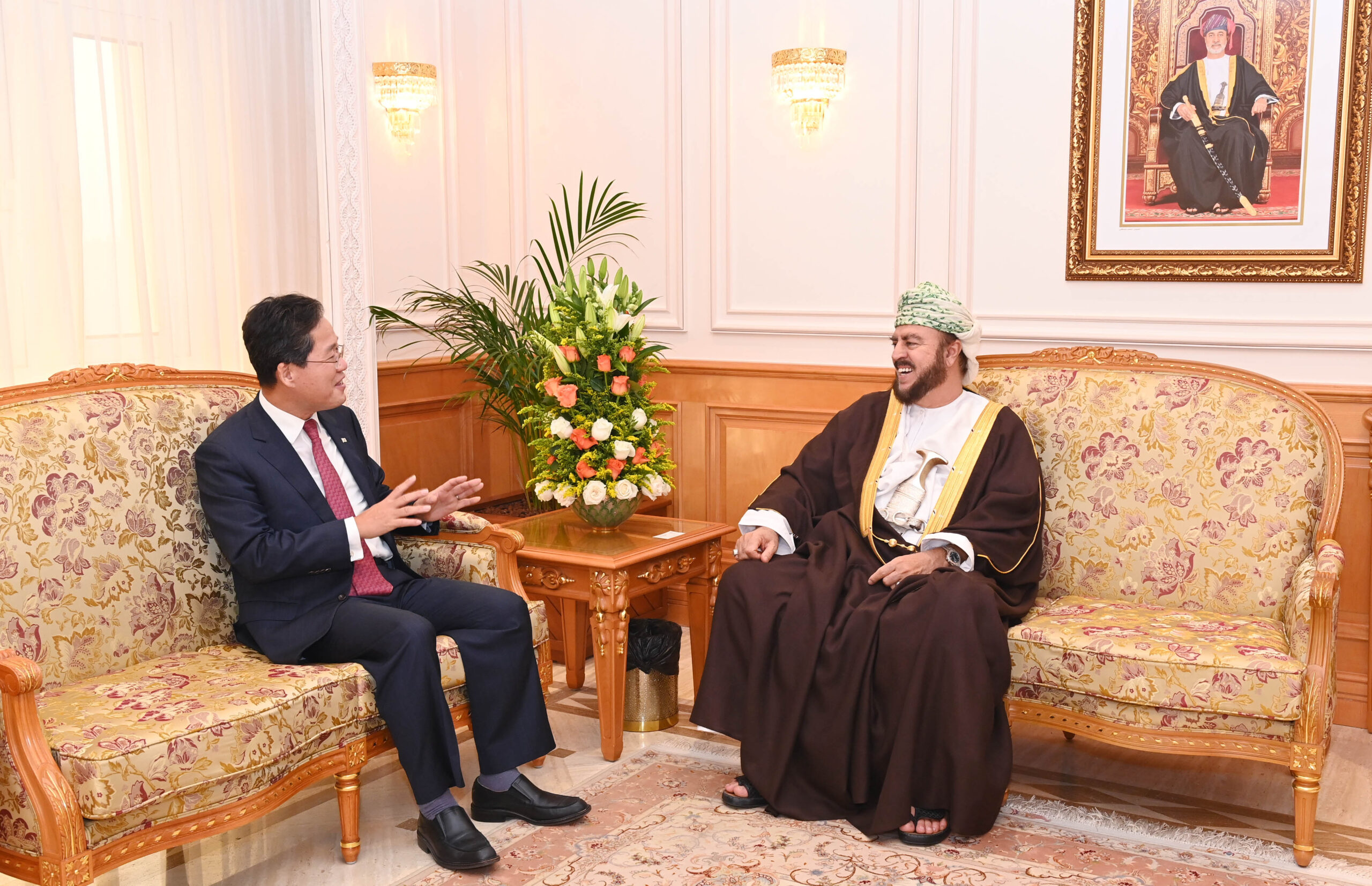 نيابة عن حضرة صاحب الجلالة – حفظه الله ورعاه – صاحب السمـو السيـد أسعد بن طـارق آل سعيد نائب رئيس الوزراء لشؤون العلاقات والتعاون الدولي والممثل الخاص لجلالة السلطان يستقبل سعادة السفير كيم تشانج كيو سفير جمهورية كوريا المعتمد لدى السلطنة، للتوديع بعد انتهاء مهام عمله.