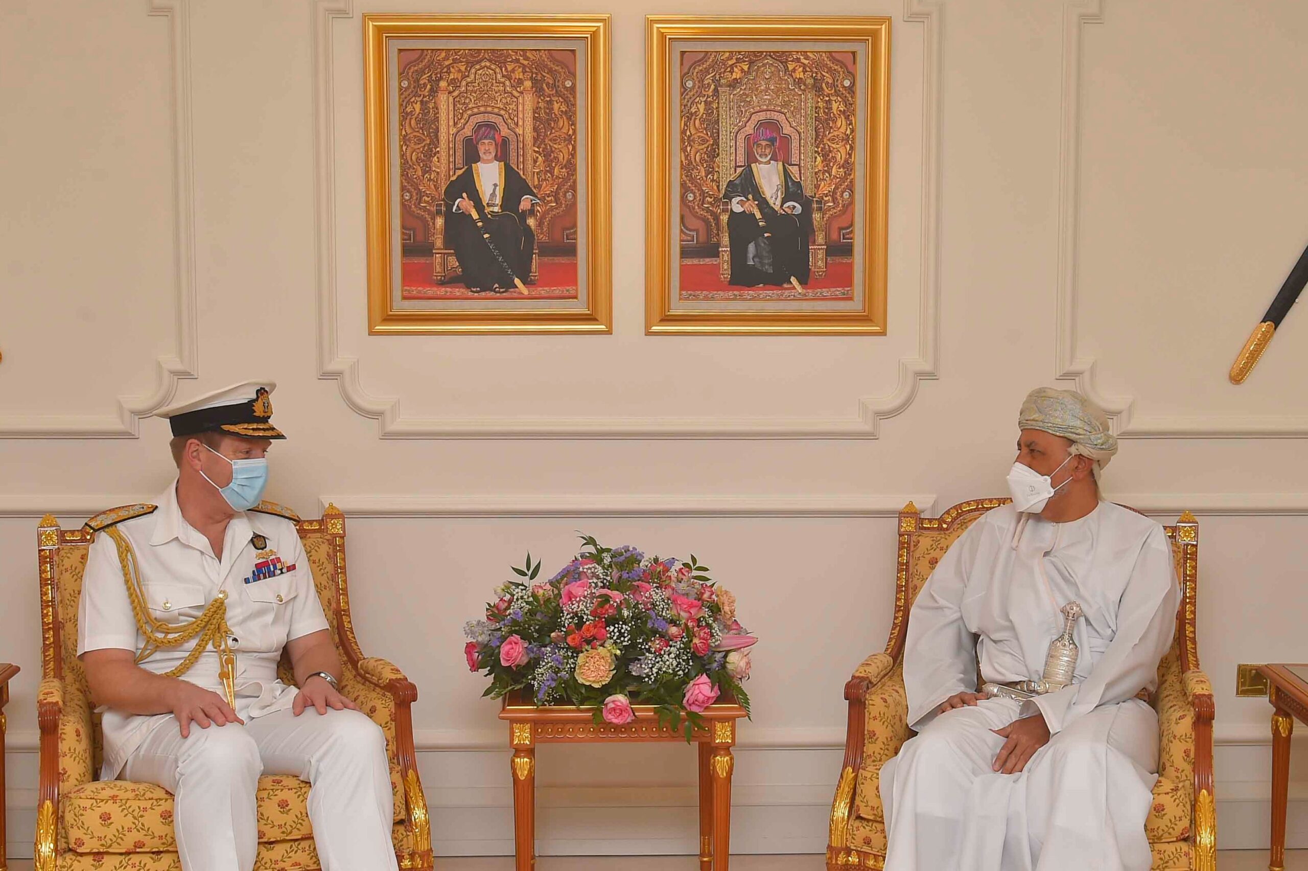 صاحب السمو السيد شهاب بن طارق آل سعيد نائب رئيس الوزراء لشؤون الدفاع يستعرض خلال لقائه الفريق أول بحري السير بنجامين كي رئيس هيئة الأركان البحرية الملكية البريطانية مجالات التعاون العسكري القائم بين البلدين الصديقين وسبل تعزيزها والأمور ذات الاهتمام المشترك.