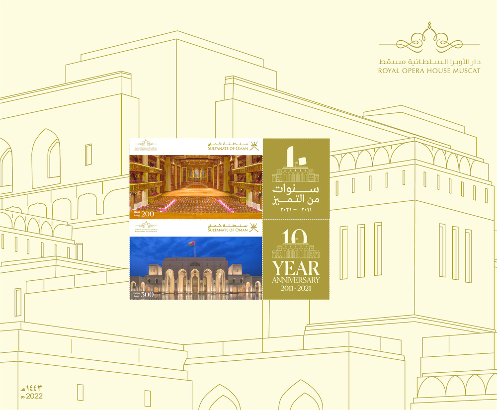 دشّنت دار الأوبرا السُّلطانية مسقط طابعها البريدي بالتعاون مع بريد عُمان في دار الفنون الموسيقية، بمناسبة الذكرى العاشرة لافتتاح الدار وتخليدًا للإنجازات والحفلات والعروض الموسيقية العالمية التي استضافتها منذ افتتاحها في أكتوبر 2011م.