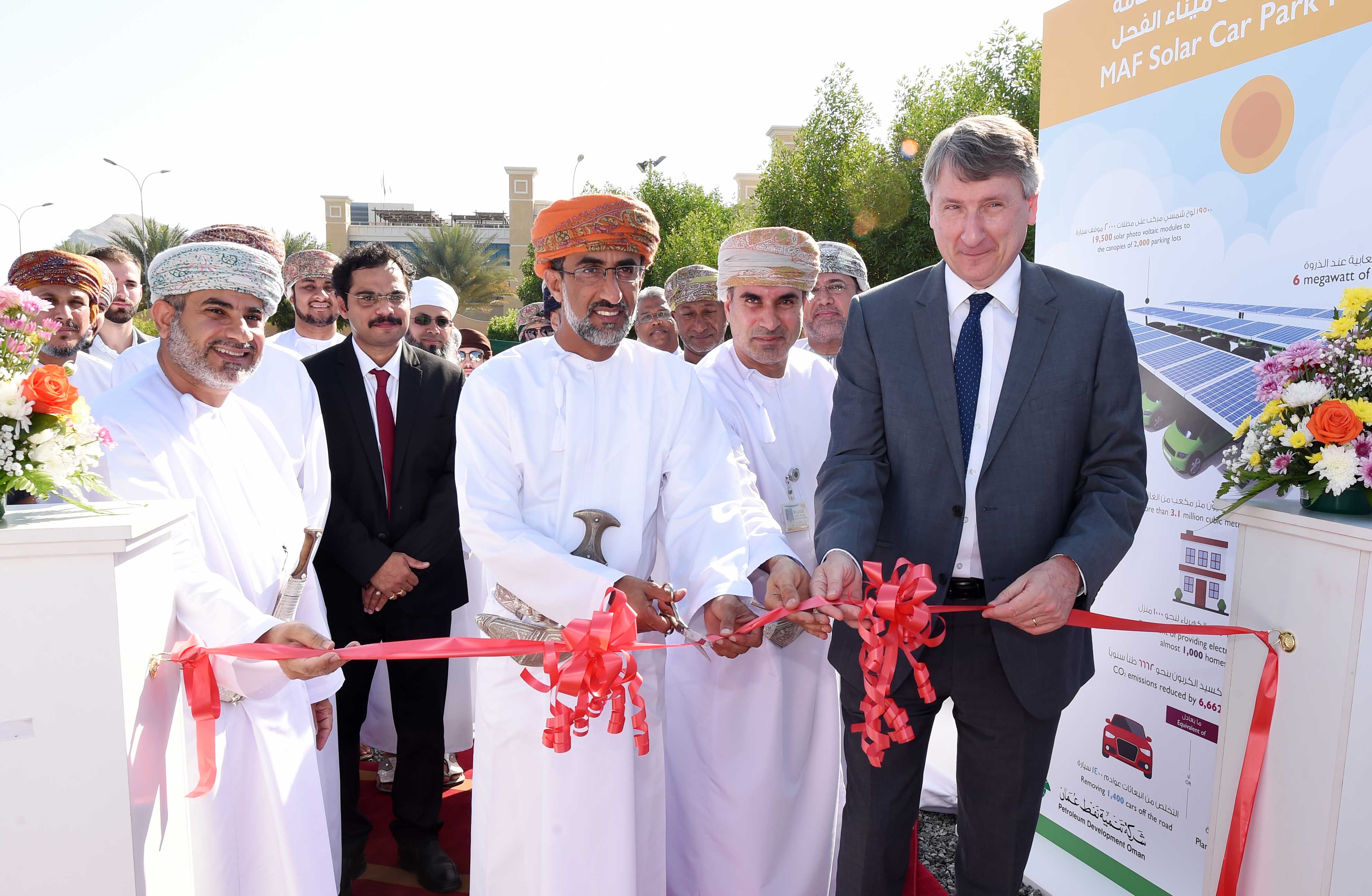 جدير بالذكر أن مشروع نظام الطاقة المتجددة تنفذه الشركة الإسبانية /إلكترون أس أيه/ بالشراكة مع الشركة العُمانية ركن اليقين الدولية وشمل المشروع تركيب ما مجموعه 19500 لوح شمسي على مظلات 2054 موقف سيارة