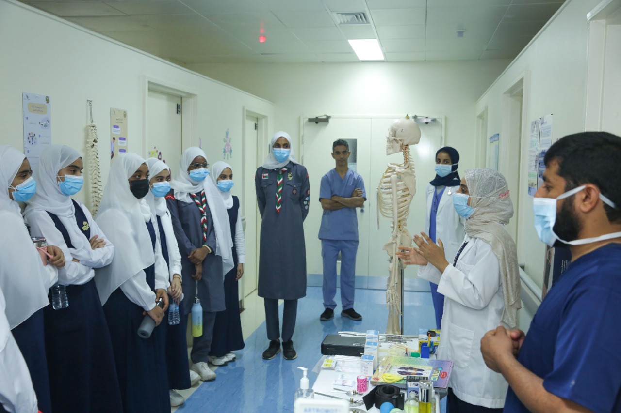 كذلك تم توزيع نشرات ورقية وإلكترونية لهم وتم استضافة عدد 80 طالبا من الصف العاشر والحادي عشر من أربع مدارس منها مدرستين للبنين ومدرستين للبنات.