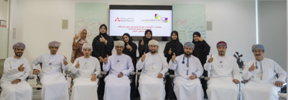 وتأكيدا على أهمية لغة الإشارة، عمل بنك مسقط مؤخرا على تنظيم برامج تدريبية لمجموعة من موظفيه العاملين في بعض الفروع على لغة الإشارة بالتعاون مع الجمعية العمانية لذوي الإعاقة السمعية حيث شارك أكثر من 210 موظفا في هذه البرامج التدريبية المستمرة، وذلك بهدف تقديم أفضل الخدمات والتسهيلات المصرفية بما يضمن لهذه الفئة الاستفادة الكبرى من الحلول المصرفية التي يقدمها البنك وأيضا تعريفهم بالمنتجات التي يقدمها.
