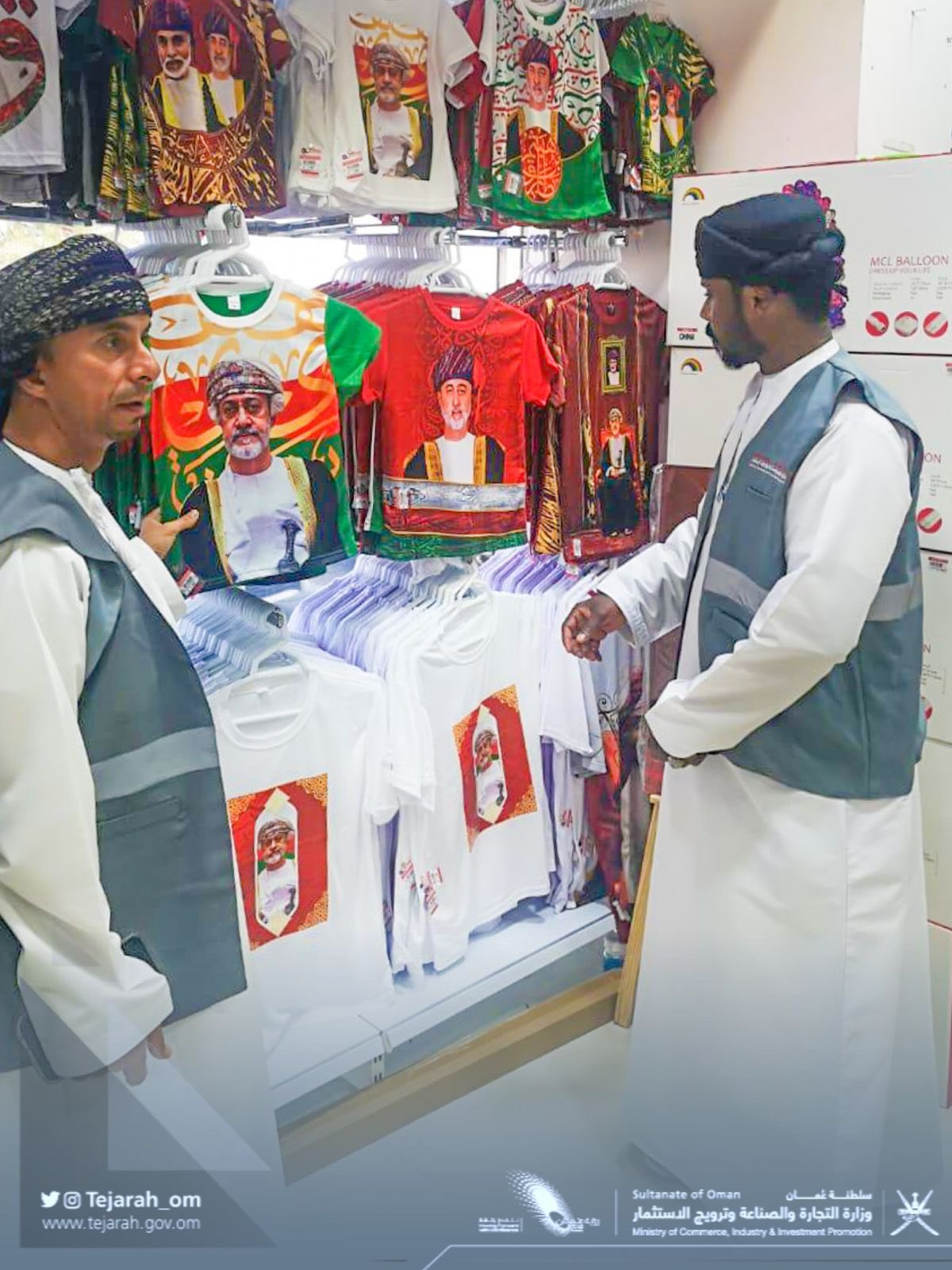 نفذت وزارة التجارة والصناعة وترويج الاستثمار حملات تفتيشية للمحلات التجارية وقامت بمصادرة عددٍ من المنتجات المعروضة؛ لاحتوائها على (شعار الدولة، علم الدولة، خريطة سلطنة عُمان) دون الحصول على الترخيص اللازم من الوزارة.