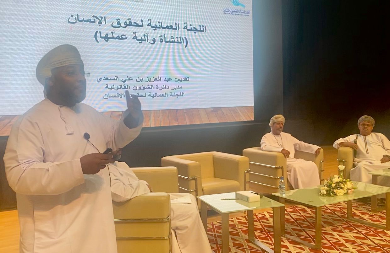 مثل اللجنة في هذه المشاركة عبدالعزيز بن علي السعدي مدير دائرة الشؤون القانونية، وسالم بن خلفان الروشدي رئيس قسم الإعلام باللجنة العُمانية لحقوق الإنسان.