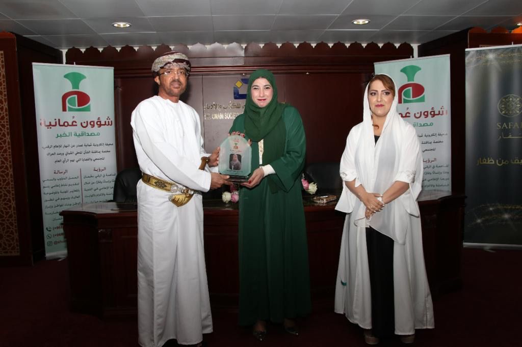 أقامت صحيفة شؤون عمانية الإلكترونية، مساء أمس، حفل تكريم لمجموعة من الكاتبات والمجيدات العمانيات في المجال الثقافي والفني، وذلك في مقر الجمعية العمانية للكتاب والأدباء، تحت رعاية سعادة خالد بن سالم الغساني المستشار بوزارة الثقافة والرياضة والشباب، وبحضور المكرم المهندس سعيد بن محمد الصقلاوي رئيس مجلس إدارة الجمعية، وجمع كبير من الأدباء والمثقفين في سلطنة عُمان.