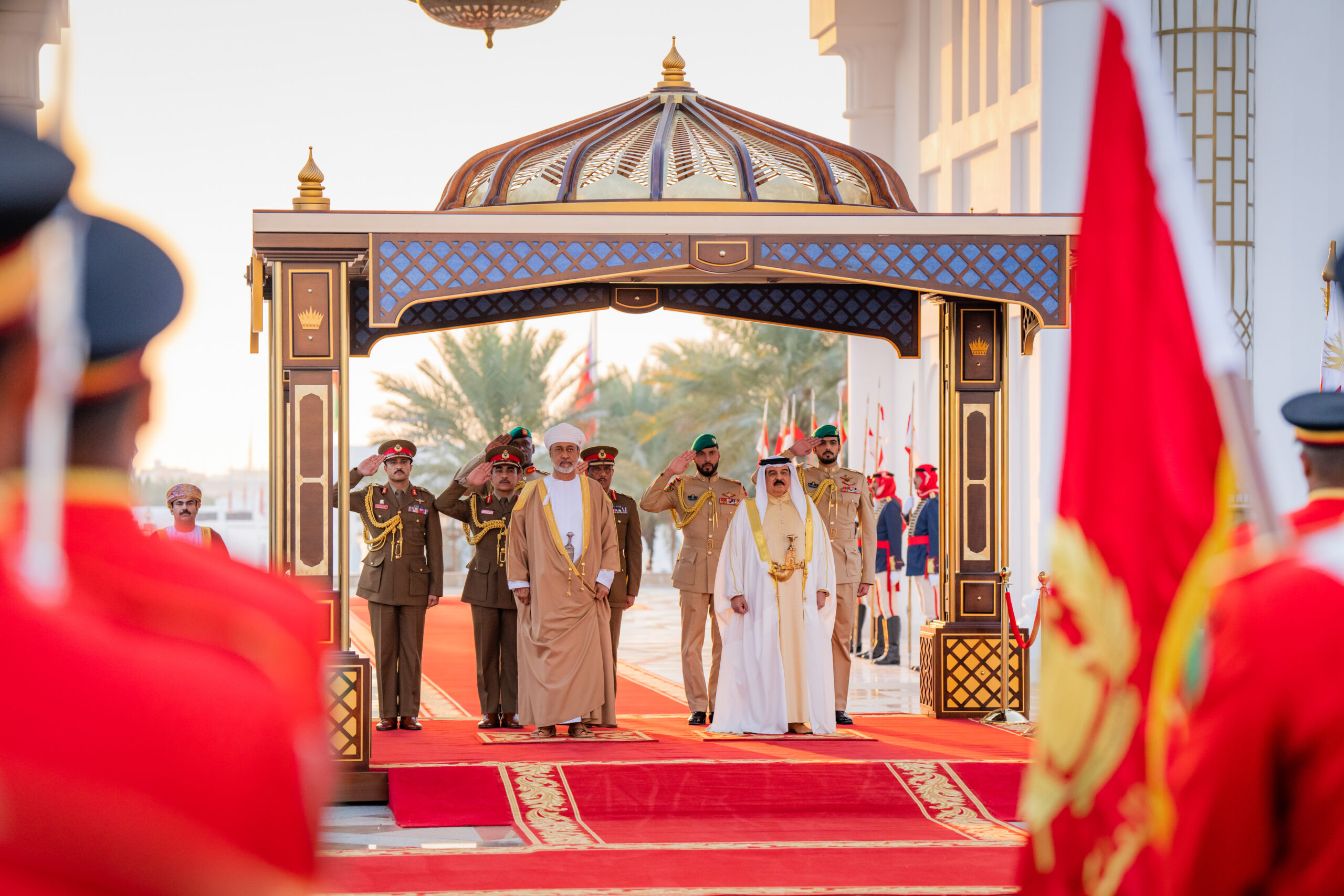 وفي جو سادته روح المودة والإخاء الذي يجسد عمق العلاقات الأخوية التاريخية المتميزة، القائمة بين البلدين والشعبين الشقيقين، عقدت جلسة مباحثات رسمية بين حضرة صاحب الجلالة السلطان هيثم بن طارق سلطان عمان المعظم، وأخيه حضرة صاحب الجلالة الملك حمد بن عيسى آل خليفة ملك مملكة البحرين المعظم، وبحضور صاحب السمو الملكي الأمير سلمان بن حمد آل خليفة ولي العهد رئيس مجلس الوزراء.