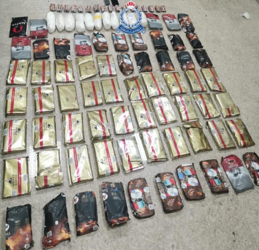 ضبطت قيادة شرطة محافظة شمال الباطنة بالتعاون مع شرطة خفر السواحل متسللا من جنسية آسيوية بتهمة تهريب وحيازة 65 كيلوجراما من مخدر الحشيش و11 كيلوجراما من مخدر الكريستال و1050 قرصا من المؤثرات العقلية، بالاشتراك مع عصابة دولية، وتستكمل الإجراءات القانونية بحقه.