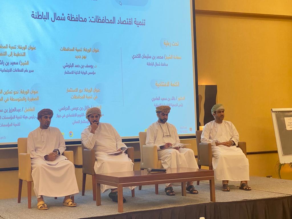 رعى المناسبة سعادة الشيخ محمد بن سليمان الكندي محافظ شمال الباطنة، التي أقيمت في ولاية صحار، بتنظيم من الجمعية الاقتصادية العمانية بالتعاون مع مكتب محافظ شمال الباطنة، حيث أكدت المجلس الاقتصادي أيضا على أهمية اشراك الكفاءات المحلية في عملية التخطيط، والترويج والتسويق للمحافظة بشكل أكبر لتشجيع الاستثمار الأجنبي، والعمل على تسهيل إجراءات الاستثمار المحلي، والتعاون مع المؤسسات الحكومية لأجل توحيد الجهود والتعرف على الفرص الاستثمارية، والتعاون مع القطاع الخاص وايجاد الحوافز للقطاع الخاص على مستوى المحافظة، والاهتمام أكثر بمشاريع الشراكة مع القطاع الخاص.