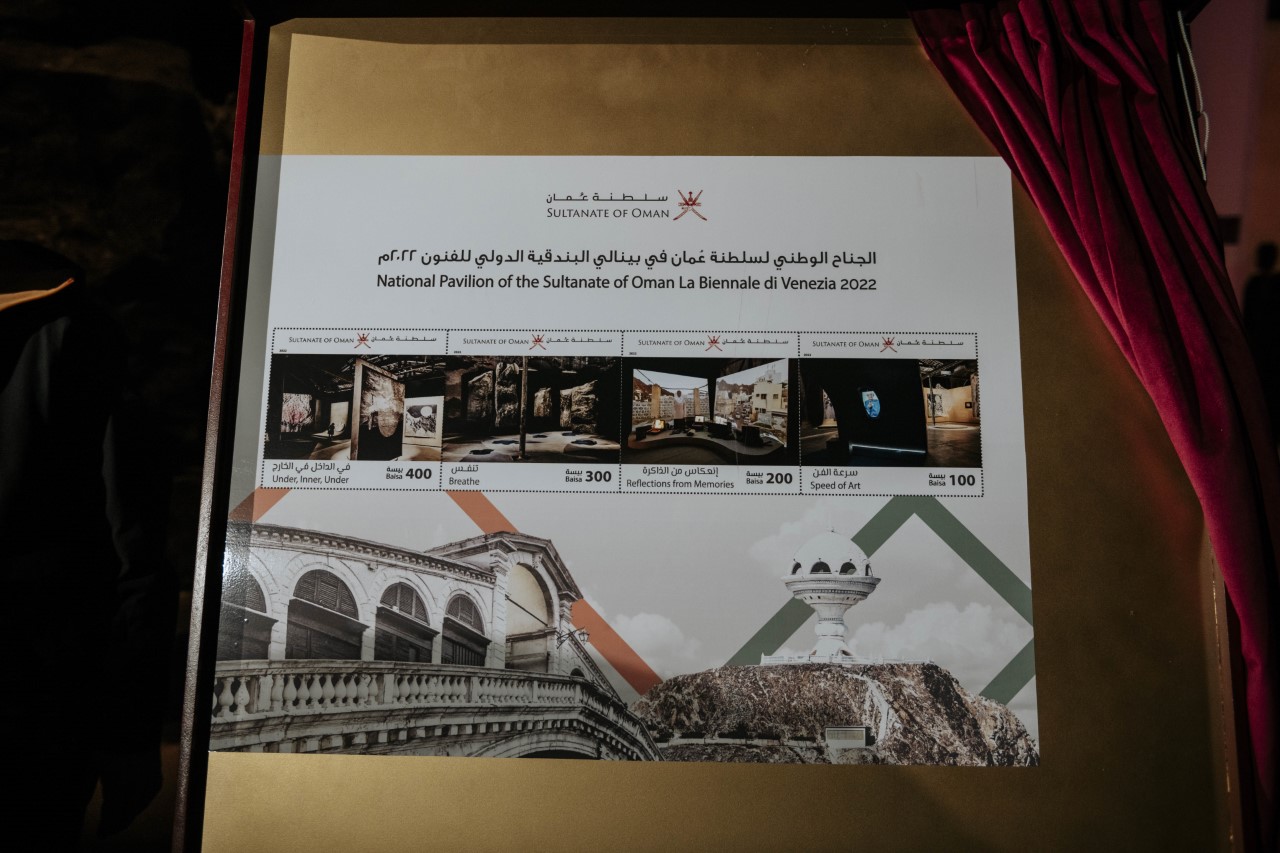 وتولّت شركة بريد عُمان إصدار أربعة طوابع بريدية حملت في طيّاتها الأعمال الفنية المقدّمة في الجناح لكلٍّ من: أنور سونيا، ورياء الرواحية، وحسن مير، وبدور الريامية، وراديكا كيمجي.