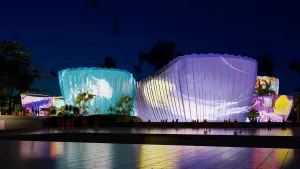 من أهم عناصر المبنى الواجهة الديناميكية المستجيبة للرياح وكأنها تموج بسلاسة حيث تنشّط الرياح الألواح المعدنية المعلقة، استجابة لأنماط الرياح المتغيرة باستمرار. وتشير الحركة المتدفقة على السطح الخارجي إلى الأشرعة البيضاء، بينما تمنح رؤية التموجات اللامعة من الداخل لتحاكي قشور الأسماك وانعكاس الشمس على المياه المتحركة.