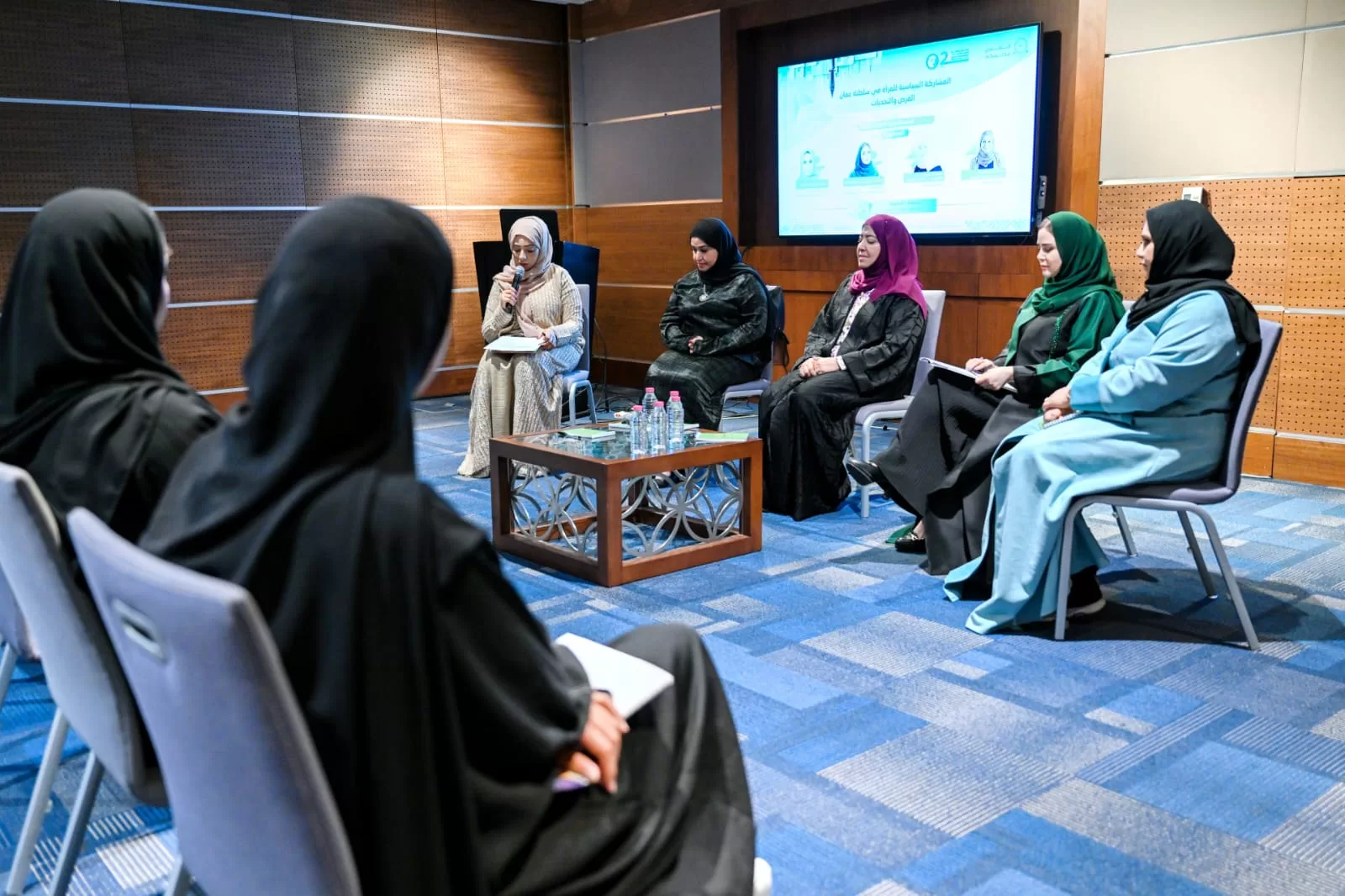 من جانبها؛ أشارت سعادة الدكتورة طاهرة اللواتية إلى أن ظاهرة عدم التصويت للنساء في مجلس الشورى لها عدة أسباب اجتماعية ونفسية وعلينا البحث في هذه الأسباب بشكل معمق، وقالت اللواتية هناك نساء يمتنعن عن الترشح للانتخابات بسبب الخوف من الفشل، وذكرت الدكتورة عهود البلوشية إن سلطنة عُمان آمنت بدور المرأة العُمانية في المجتمع ونحن الآن نحصد نتاج هذا الإيمان فجميعنا شركاء في عملية التنمية، وأشارت البلوشية إلى أن تواجد عدد قليل من النساء في مجلس الشورى يجعل باقي النساء لا يُقدمن على الترشح خوفًا من الفشل ومن هنا نحن نُشيد بالجهود التي بذلتها المرأة العُمانية في المجال السياسي، كما تطرقت إلى أهمية المجالس الاستشارية الطلابية في الجامعات ودور الإعلام للوصول إلى الفئة المستهدفة بطريقة مهنية وكذلك دور جمعيات المرأة العُمانية.