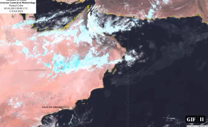 أوضحت الصور الجوية استمرار تدفق السحب المتوسطة على معظم المحافظات مع هطول أمطار متفرقة على أجزاء من محافظة الوسطى