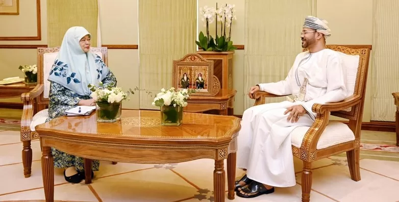 تسلم معالي السيد بدر بن حمد البوسعيدي وزير الخارجية نسخة من أوراق اعتماد سعادة نور اليزان عبدالمؤمن سفيرة سلطنة بروناي دار السلام المعيّنة لدى سلطنة عمان.