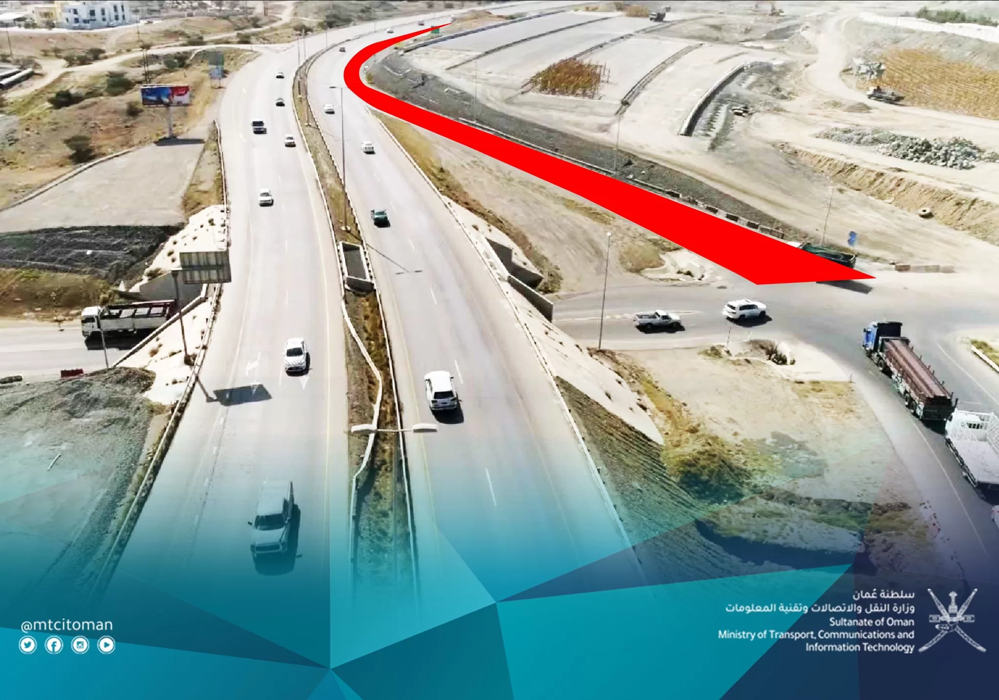 ونوهت الوزارة أنه على مستخدمي الطريق استخدام الطريق البديل “تقاطع طريق مسقط السريع”وذلك لحين الانتهاء من مشروع توسعة الطريق.
