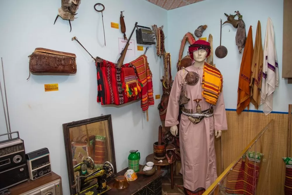 يحتوي المتحف على مقتنيات قديمة تعود إلى ٥٠٠ عام، ويتكون من عدة أركان من بينها ركن الأسلحة التقليدية أبرزها /الكنَد والمنقل / وهي أنواع من البنادق القديمة ومجموعة من السيوف والخناجر القديمة، وركن للكتب والصحف، ومصاحف قديمة، وركن مختص بأدوات الزينة للزي العماني التقليدي ومجموعة من الفخاريات والأدوات المنزلية وركن عن العملات والنقود والمسكوكات وأدوات أخرى متنوعة.