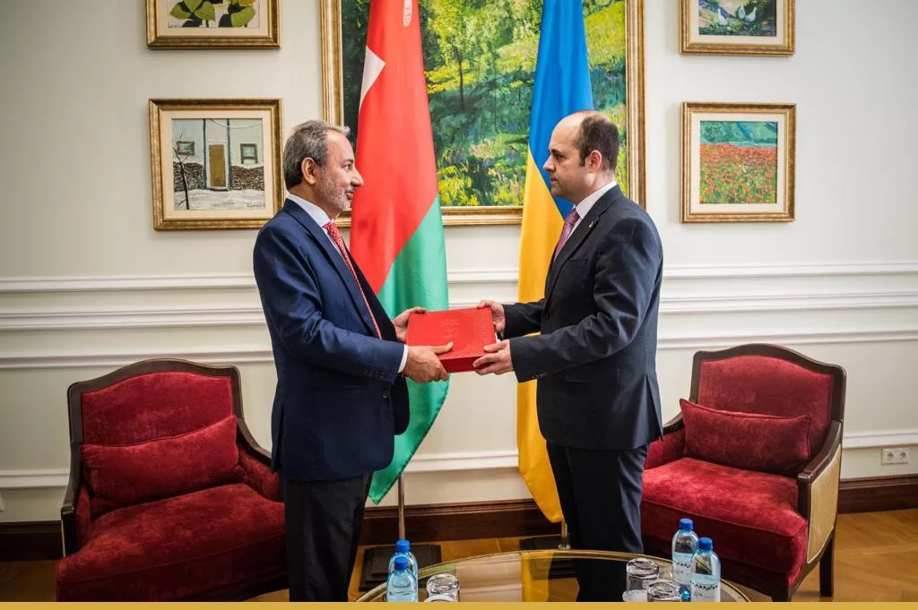 قام بتسليم الرسالة سعادة السفير المتجول الشيخ عبدالعزيز بن عبدالله الهنائي خلال استقباله في العاصمة الأوكرانية “كييف” من قبل سعادة الدكتور مكسيم صبح مبعوث الرئيس الأوكراني الخاص لشؤون الشرق الأوسط وأفريقيا.