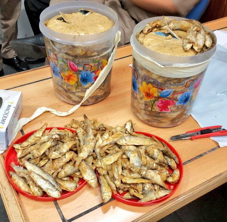 شؤون عمانية: أحبطت جمارك مطار الدولي عملية تهريب 6.300 كيلوجرام من مخدر الماريجوانا مخبأة بشكل احترافي في علب بلاستيكية كبيرة مغطاة بالأسماك .