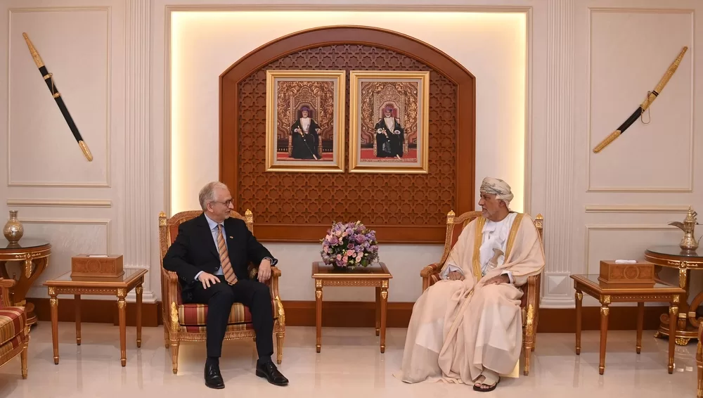 بتكليف سامٍ من لدن حضرة صاحب الجلالة السلطان هيثم بن طارق المعظم -حفظه الله ورعاه- استقبل صاحب السمو السيد شهاب بن طارق بن تيمور آل سعيد نائب رئيس الوزراء لشؤون الدفاع اليوم بمكتبه، سعادةَ توماس شنايدر سفير جمهورية ألمانيا الاتحادية الصديقة، وذلك للتوديع بمناسبة انتهاء مهام عمله سفيرا لبلاده لدى سلطنة عُمان.
