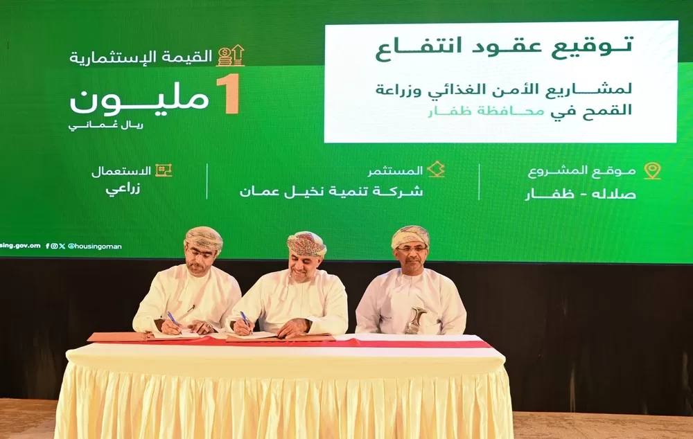 ويأتي توقيع الاتفاقيات ضمن الجهود الحكومية الرامية إلى تنويع مصادر الأمن الغذائي والاستثمار الأمثل للأراضي ورفع كفاءة استخدامها ضمن أهداف رؤية “عُمان 2040”.