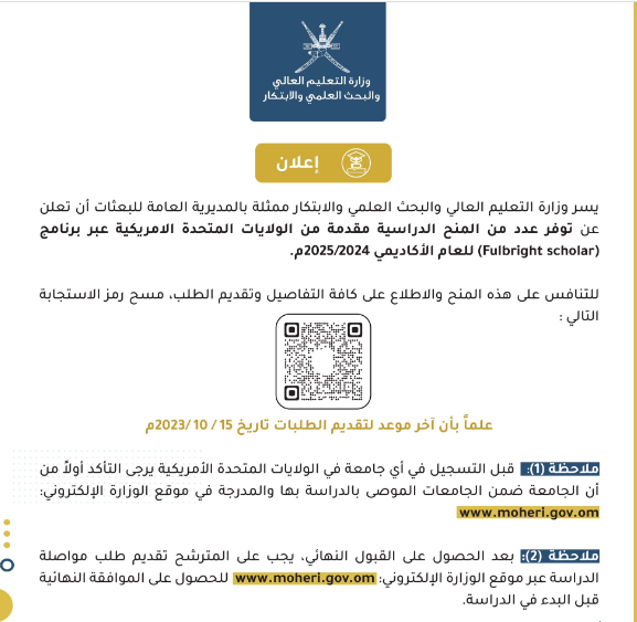 أعلنت وزارة التعليم العالي والبحث العلمي، عن توفر عدد من المنح الدراسية المقدمة من الولايات المتحدة الأمريكية، موضحة أن أخر موعد للتسجيل في المنح الدراسية، هو يوم 15 أكتوبر من الشهر الجاري.
