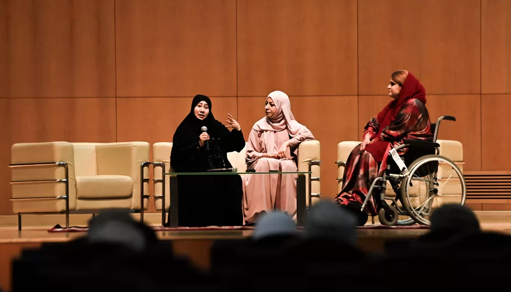 وألقت عائشة بنت عمر العيدروس رئيسة اللجنة المنظمة للملتقى كلمة أشارت فيها إلى أن سلطنة عُمان تولي اهتمامًا بالغًا بالأشخاص ذوي الإعاقة، وتسعى إلى توفير الرعاية والدعم والتأهيل لهم بشتى الوسائل المتاحة وفق إمكانياتهم وقدراتهم من خلال إنشاء العديد من المراكز والجمعيات المتخصصة في تعليمهم وتأهيلهم ووضع القوانين والتشريعات وتوقيع الاتفاقيات بهدف اندماجهم مع بقية أفراد المجتمع والتمتع بكافة التسهيلات الرامية إلى تحقيق أسلوب حياة كريمة لهم، من خلال عدد من المؤسسات بموجب عدد من اللوائح والتشريعات.