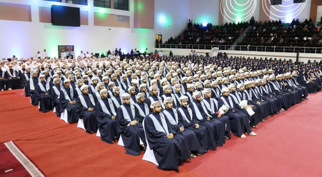 احتفلت جامعة التقنية والعلوم التطبيقية بفرعيها -إبراء وصور- مساء اليوم الأربعاء بتخريج 558 طالباً وطالبة، بواقع 406 خريجين وخريجة من فرع الجامعة بإبراء، و152 خريج وخريجة من فرع الجامعة بصور من كليات الهندسة والتكنولوجيا، والاقتصاد وريادة الأعمال، وعلوم الحاسوب والمعلومات، والصناعات الإبداعية والصيدلة وذلك بمجمع إبراء الرياضي تحت رعاية صاحب السمو السيد محمد بن ثويني بن شهاب آل سعيد و بحضور سعادة الدكتور سعيد بن حمد الربيعي رئيس جامعة التقنية والعلوم التطبيقية، وسعادة محمود بن يحيى الذهلي محافظ شمال الشرقية، وسعادة الدكتور يحيى بن بدر المعولي محافظ جنوب الشرقية، وعدد من المكرمين وأصحاب السعادة ومديري عموم مؤسسات القطاعين العام والخاص، وأعضاء الهيئتين الإدارية والتدريسية بفرعي الجامعة إضافة إلى أولياء أمور الخريجين.