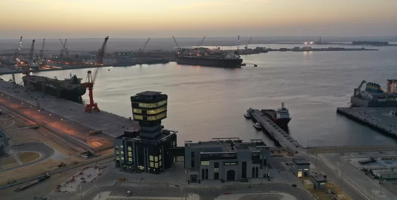 وتم خلال المرحلة الأولى من أعمال البنية الأساسية للرصيف تطوير واستصلاح 79 هكتارًا من المنطقة المحاذية لكاسر الأمواج البالغ طوله 4.6 كيلومتر لتشييد رصيف المواد السائلة والسائبة، كما تم تشييد مرسى الرصيف المزدوج مع الملحقات وأدوات الملاحة البحرية، وحفر حوالي 26 مليون متر مكعب من المواد لأعمال تعميق الحوض إلى 18 مترًا وتعميق قناة المسار بالميناء التي تؤدي إلى الرصيف لتبلغ 19 مترًا، وتم استخدام حوالي 5 ملايين متر مكعب من هذه المواد لاستصلاح وردم الموقع المخصص للرصيف، كما تم تشييد جدار للرصيف بطول كيلومتر واحد وتركيب العوامات وأجهزة المساعدات الملاحية.