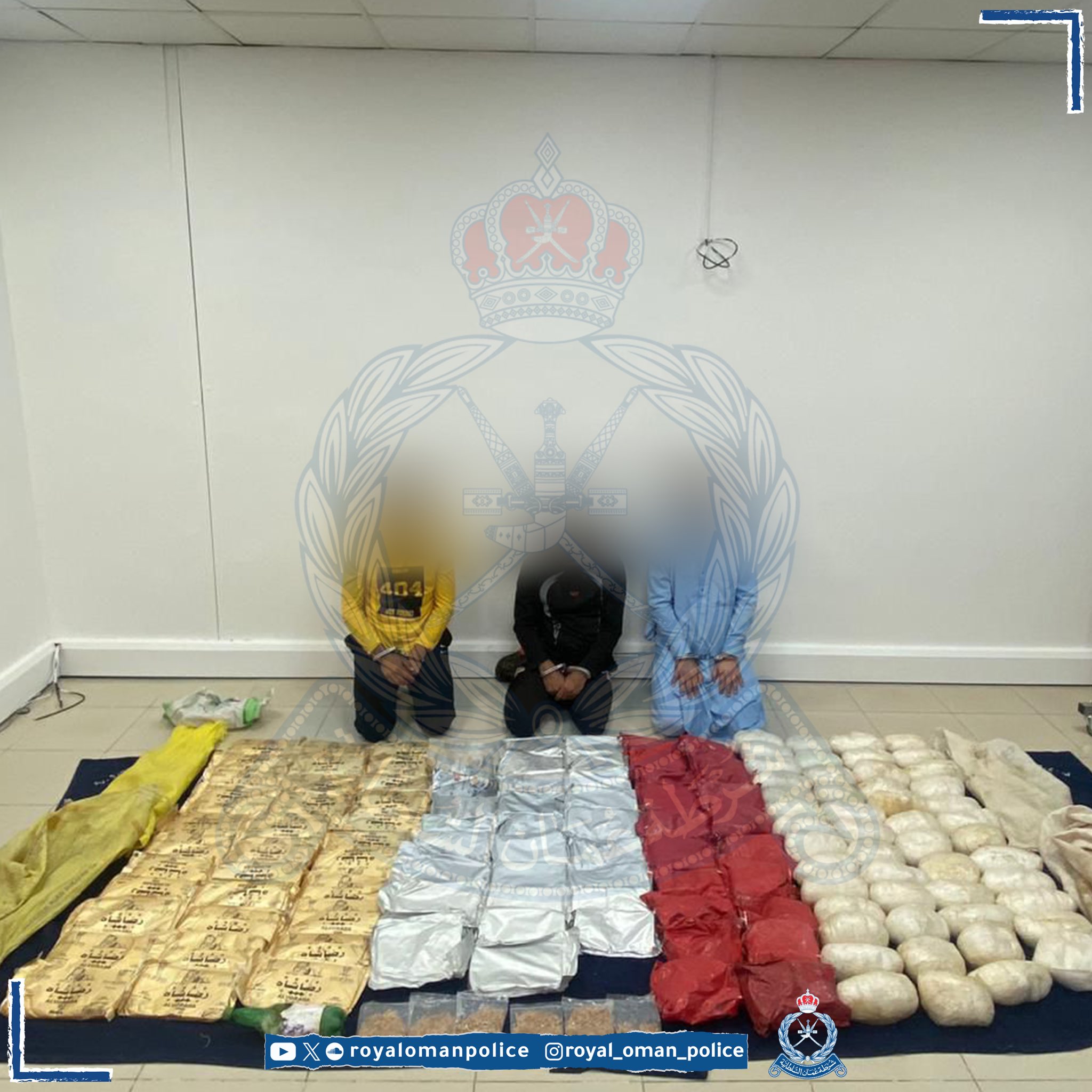 ألقت الإدارة العامة لمكافحة المخدرات والمؤثرات العقلية القبض على ثلاثة وافدين من جنسية آسيوية وبحوزتهم أكثر من 70 كيلوجرامًا من مخدر الحشيش و 60 كيلوجرامًا من مخدر الكريستال و5300 قرص من المؤثرات العقلية، وتُستكمل الإجراءات القانونية.