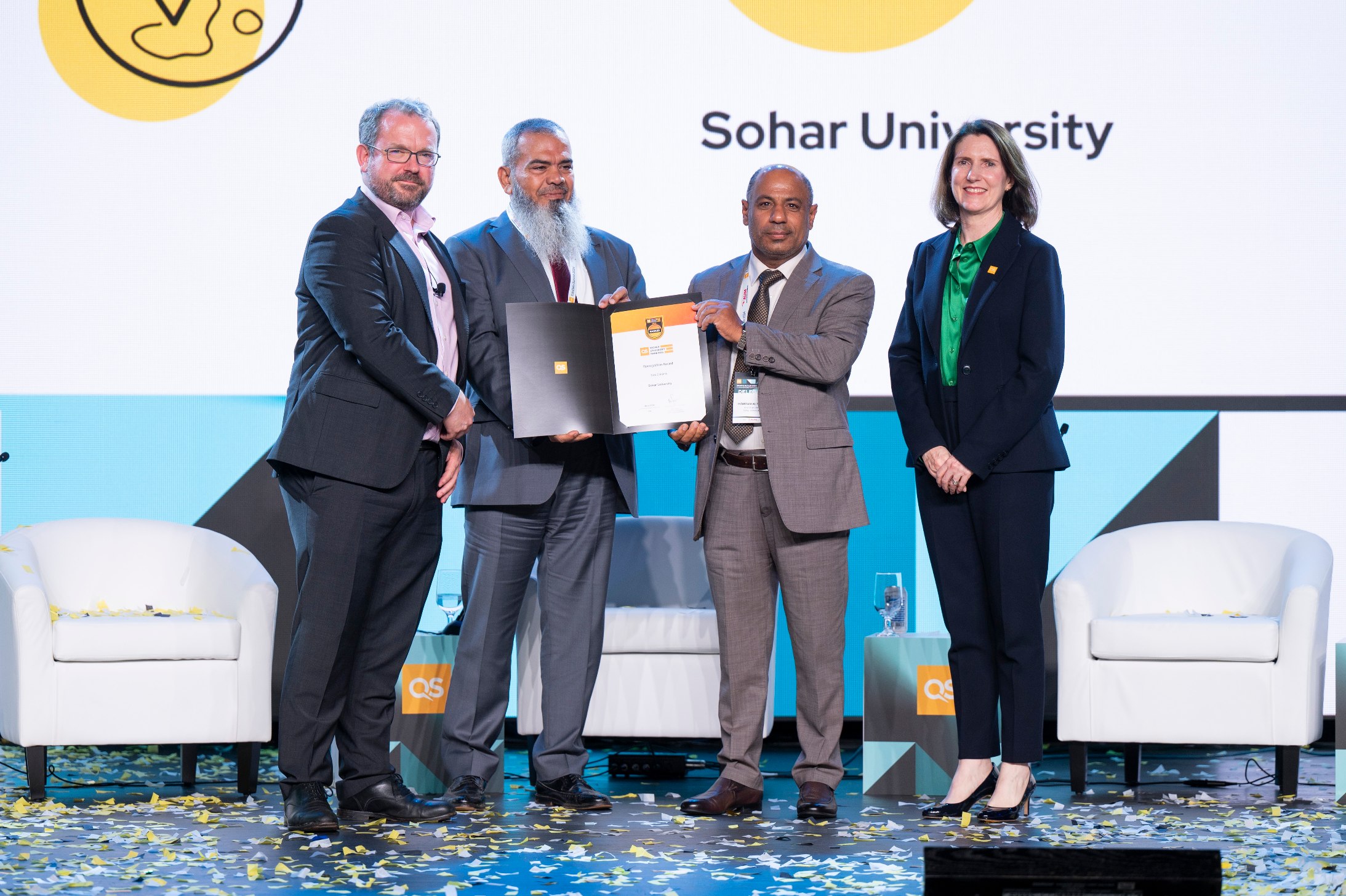 احتلت جامعة صحار المركز الثاني محليا، وأول جامعة بين الجامعات والكليات الخاصة التي تدخل في تصنيف (QS) العالمي لتصنيف الجامعات حيث تم إدراجها ضمن الفئة (1001-1200) جامعة على مستوى العالم. يأتي هذا الإنجاز ترجمة للجهود التي تبذلها الجامعة في مختلف المستويات العلمية والبحثية والتي تسهم في تحقيق مستهدفات رؤية عُمان 2040.