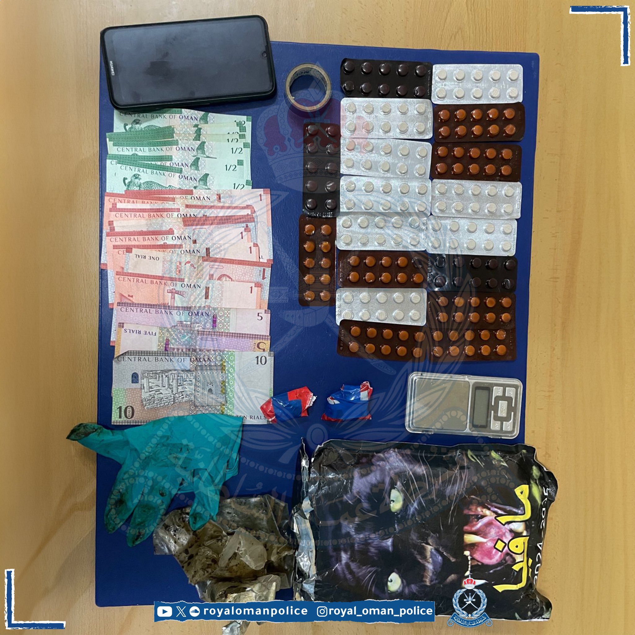 ضبطت إدارة مكافحة المخدرات والمؤثرات العقلية بقيادة شرطة محافظة ظفار شخصًا من جنسية آسيوية بحوزته كمية من مخدر الحشيش وأقراص من المؤثرات العقلية للاتجار بها، وتُستكمل الإجراءات القانونية.