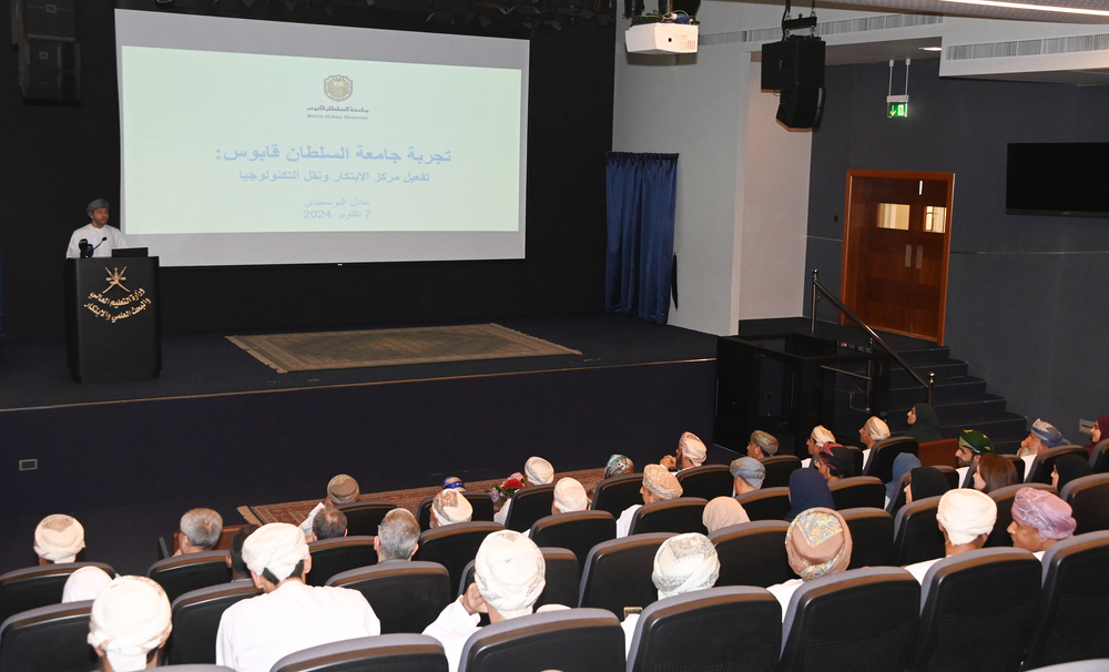 وقدّم الدكتور عادل بن سعيد البوسعيدي، مدير مركز الابتكار ونقل التكنولوجيا بجامعة السلطان قابوس عرضًا مرئيًّا حول تجربة الجامعة في تفعيل مركز الابتكار ونقل التكنولوجيا، تناول القدرة على الابتكار وريادة الأعمال وتضمنت البنية الأساسية والتمويل ورأس المال البشري بالإضافة إلى الثقافة والحوافز.
