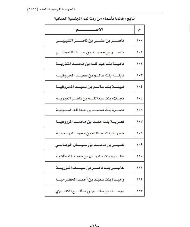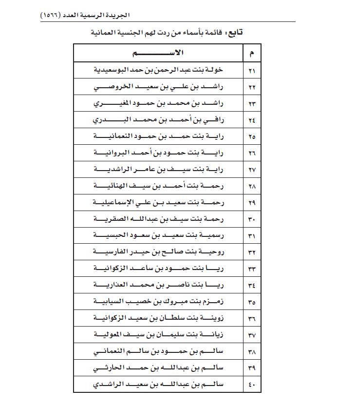 قائمة بأسماء من ردت لهم الجنسية العمانية