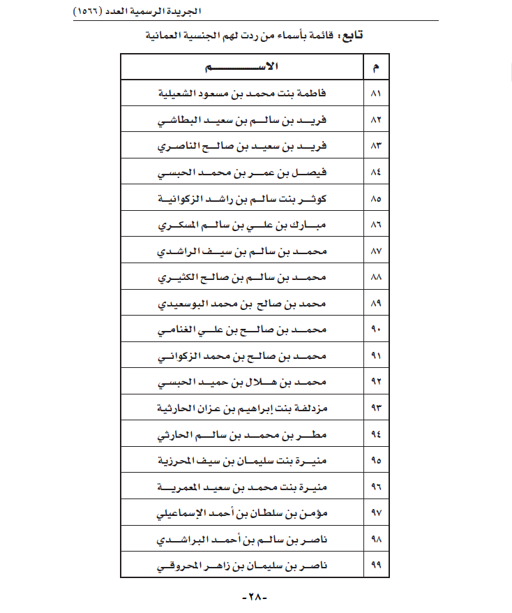 ترد الجنسية العمانية لكل من الواردة أسماؤهم فـي القائمة المرفقة.