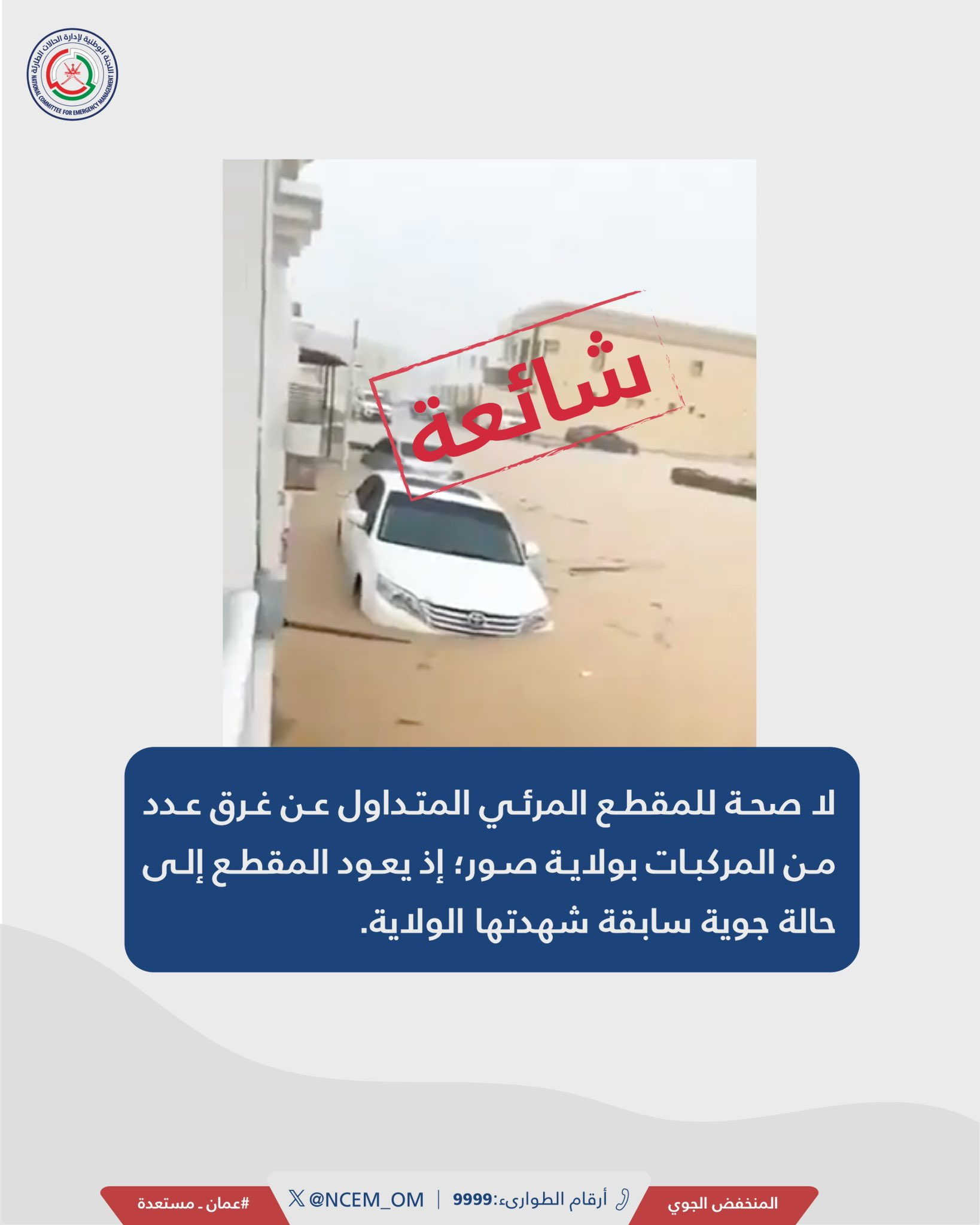 نفت اللجنة الوطنية للحالات الطارئة ما يتداول عن غرق عدد من المركبات بولاية صور.