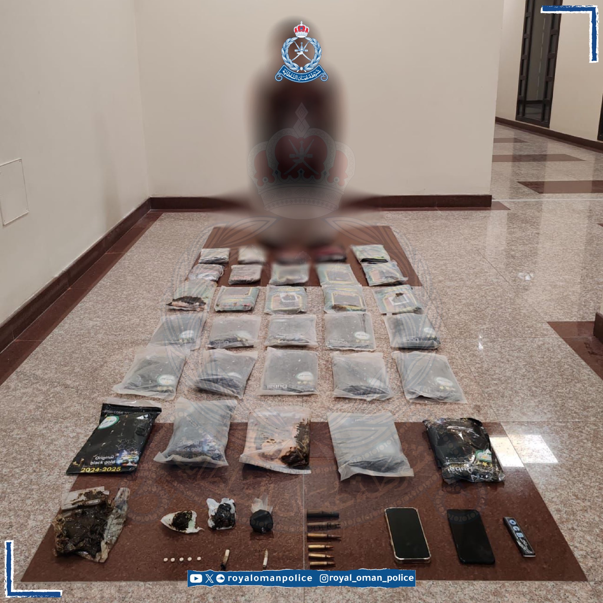 ألقت إدارة مكافحة المخدرات والمؤثرات العقلية بقيادة شرطة محافظة جنوب الباطنة القبض على شخص وبحوزته أكثر من 30 كيلوجرامًا من مخدر الحشيش، وتُستكمل الإجرات القانونية بحقه.