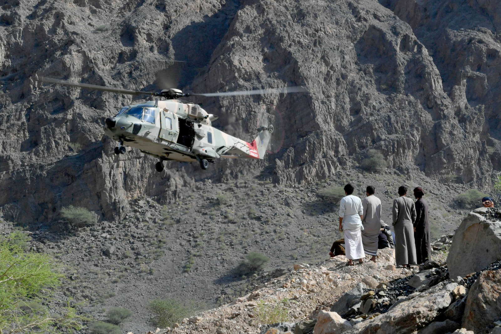 قام اليوم سلاح الجو السلطاني العُماني وبإسناد من الجيش السلطاني العُماني بتسيير إحدى طائراته العمودية إلى أهالي قرى حيل الكفوف بوادي العربيين بولاية قريات؛ وذلك لنقل مواد استهلاكية إلى أهالي تلك المناطق وتسهيل مهمة إيصالها للمواطنين القاطنين فيها لصعوبة إيصالها بواسطة الطرق البرية.