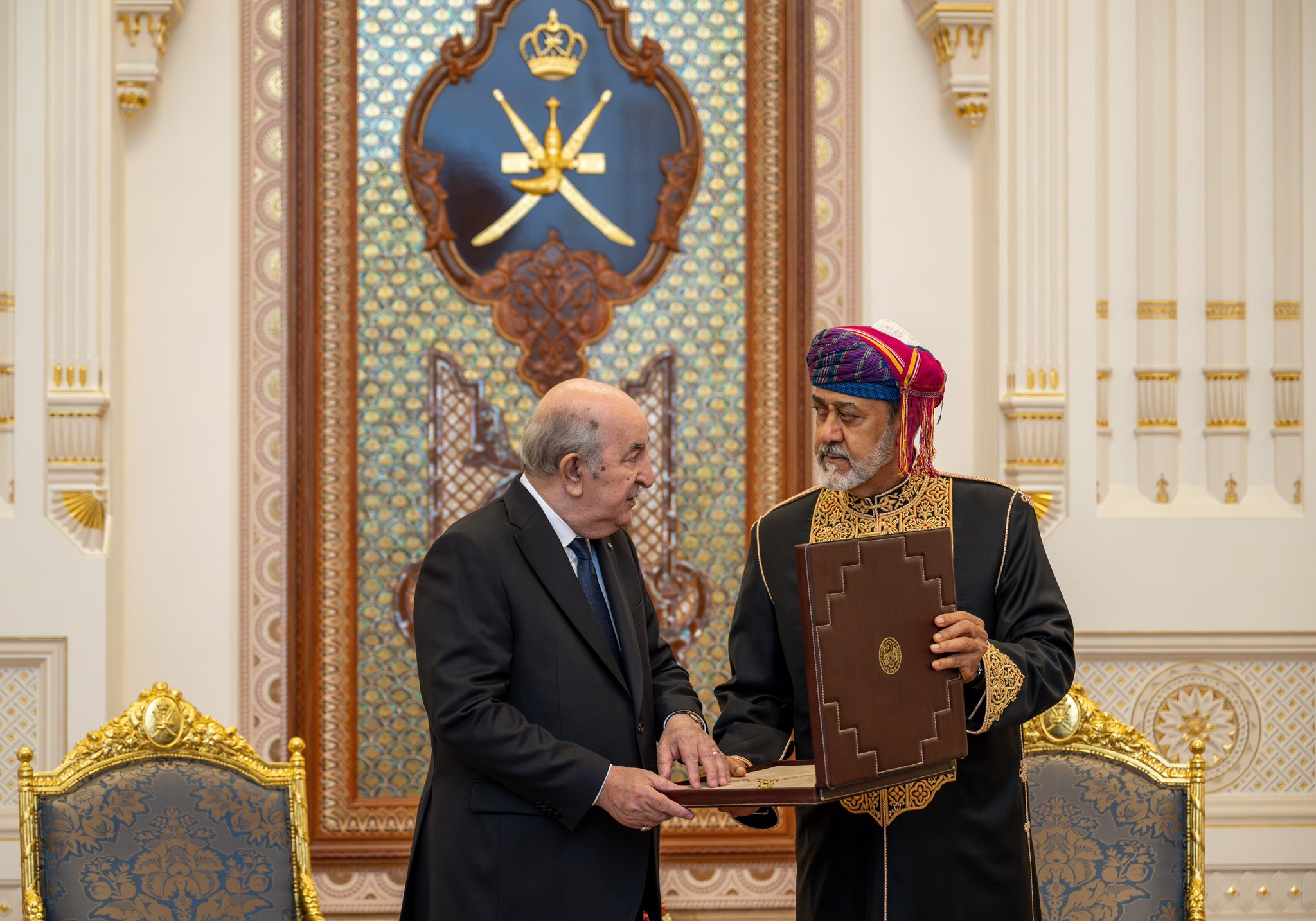 جلالة السُّلطان المعظم / حفظه الله ورعاه/ وفخامة رئيس الجمهورية الجزائرية الديمقراطية الشعبية يُباركان مبادرة إنشاء صندوق استثماري عُماني جزائري مشترك، يتم من خلاله إقامة شراكات ومشروعات في مجالات الطاقة المتجددة والبتروكيماويات والزراعة الصحراوية والتكنولوجيا والسياحة وغيرها من المجالات الأخرى الواعدة.