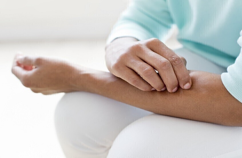6. جلد جاف ومثير للحكة خاصة على الذراعين والساقين والمرفقين والقدمين