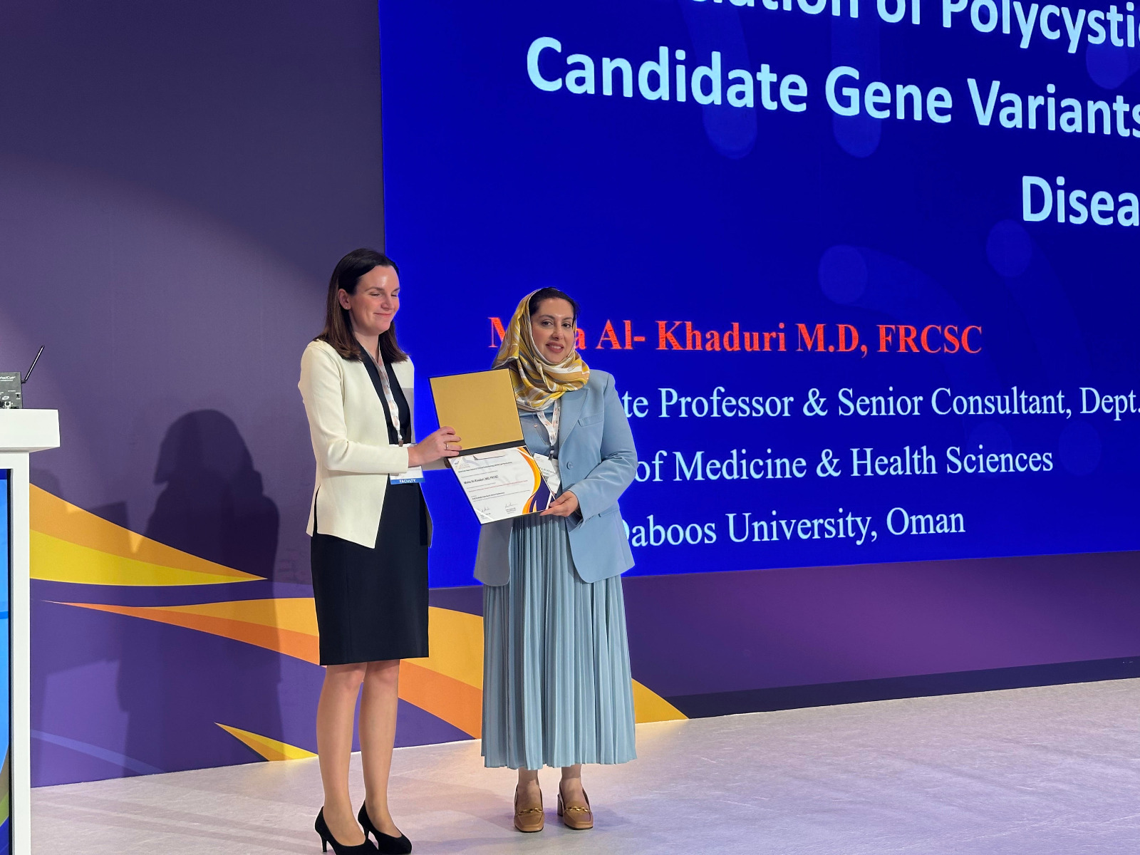 حصلت الدكتورة مها بنت مبارك الخضورية، أستاذ مشارك بقسم أمراض النساء والولادة بكلية الطب والعلوم الصحية في جامعة السلطان قابوس، على جائزة أفضل ورقة علمية في العرض الشفوي، وذلك خلال مؤتمر الرابطة الأمريكية لمجتمعات أمراض الغدد الصماء لمنطقة الشرق الأوسط وشمال أفريقيا، في مدينة دبي.