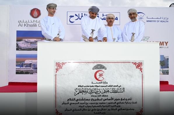 احتفلت وزارة الصحة اليوم بوضع حجر أساس “مستشفى الفلاح” في محافظة جنوب الشرقية على مساحة أرض تقدّر بـ 343 ألف متر مربع وتبلغ مساحة البناء 58 ألف متر مربع وبتكلفة تبلغ 51 مليونًا و861 ألفًا و148 ريالًا عُمانيًّا، وبسعة 170 سريرًا، ومدة تنفيذه 30 شهرًا.