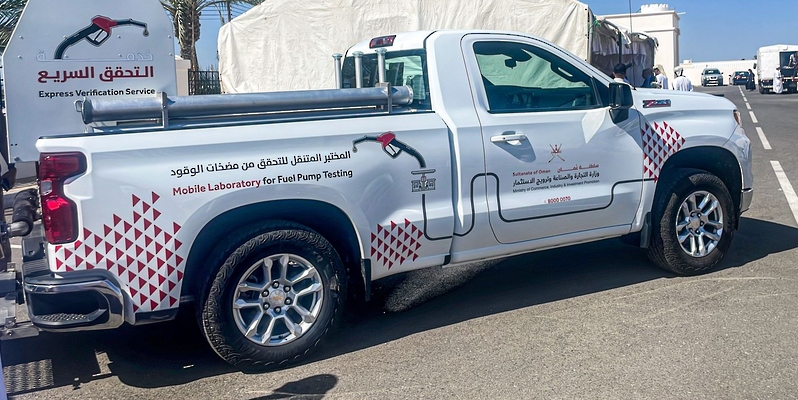 أدخلت وزارة التجارة والصناعة وترويج الاستثمار مختبرات متنقلة للتحقق من مضخات الوقود بهدف ضمان سرعة الاستجابة والدقة والموثوقية في قياسات كميات الوقود ونوعية الوقود المقدمة للمستهلكين وستكون البداية في ثلاث محافظات: مسقط وظفار وشمال الباطنة.