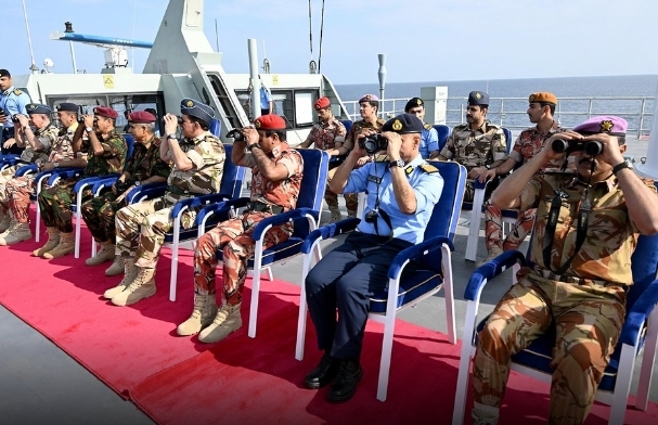 زار عدد من قادة قوات السُّلطان المسلحة والأجهزة العسكرية والأمنية اليوم لموقع التمرين البحري (أسد البحر 1 / 2025 ) الذي تنفذه البحرية السُّلطانية العُمانية، بمشاركة عدد من سفن أسطول البحرية السُّلطانية العُمانية، وإسناد من الجيش السُّلطاني العُماني، وسلاح الجو السُّلطاني العُماني، وشرطة خفر السواحل بشرطة عُمان السُّلطانية.