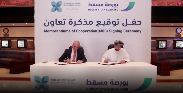 وقّعت بورصة مسقط اليوم بمسقط مذكرة تعاون مع بورصة فلسطين، تهدف إلى وضع إطار مشترك لتبادل المعلومات والخبرات وتعزيز الإدراج المزدوج وتسهيل دخول الوسطاء إلى البورصتين وتعزيز بيئة الاستثمار في البلدين الشقيقين.